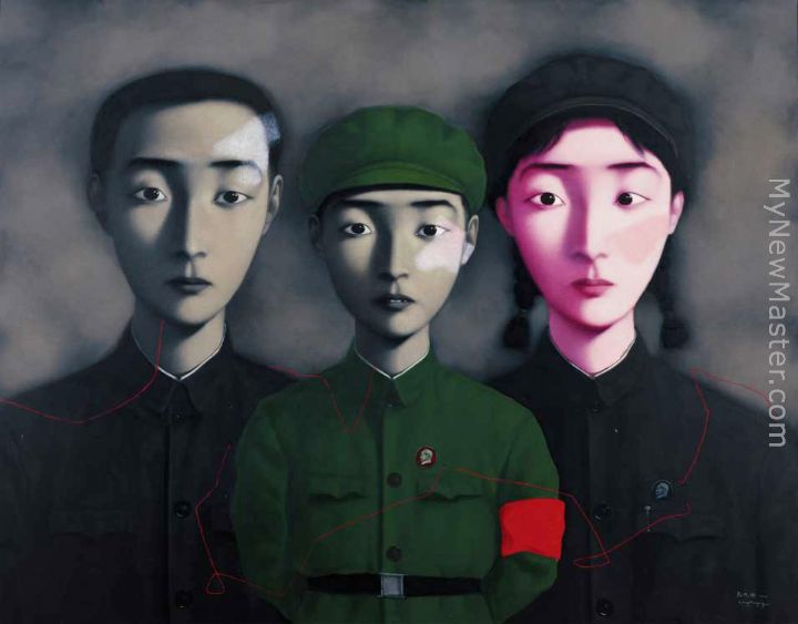 Beautiful, original hand-painted artwork in your home. Reproductioin based on the masters' The Big Family No. 3 of zhang xiaogang.