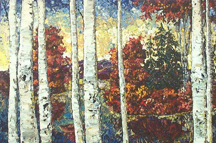 We offer 100% handmade reproduction of MAYA EVENTOV Brian's Birches painting for sale.