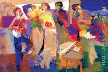 We offer original oil painting, stretched canvas and large framed art for Hessam Abrishami Harmonic Night, but do not offer poster, print or giclee.