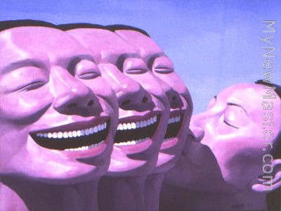 We offer original oil painting, stretched canvas and large framed art for yue minjun LOVE, but do not offer poster, print or giclee.