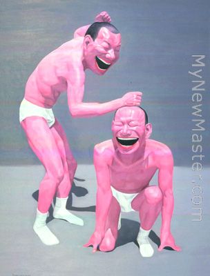 We offer 100% handmade reproduction of yue minjun make it smart painting for sale.