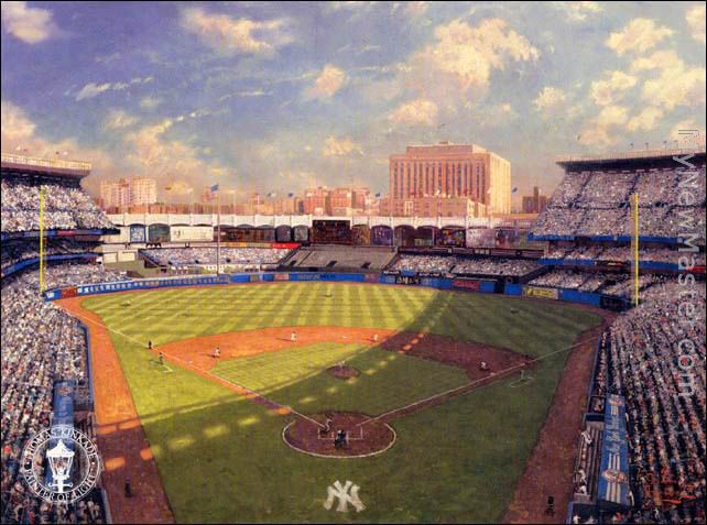We offer original oil painting, stretched canvas and large framed art for Thomas Kinkade ny yankee stadium, but do not offer poster, print or giclee.