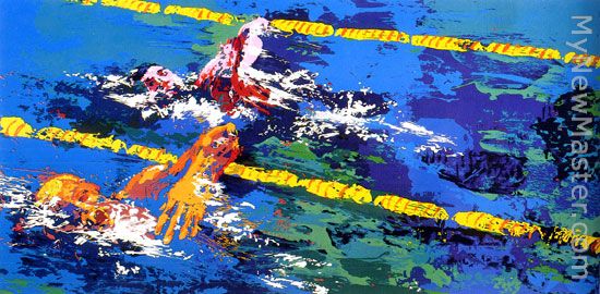 We offer original oil painting, stretched canvas and large framed art for leroy neiman Olympic Swimmers, but do not offer poster, print or giclee.