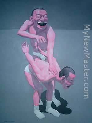 We offer original oil painting, stretched canvas and large framed art for yue minjun Punishment, but do not offer poster, print or giclee.